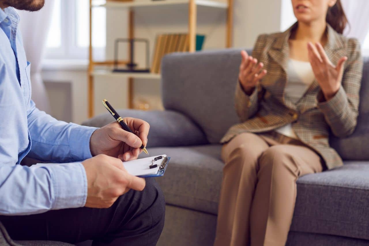 psiquiatra atendendo um cliente em sua clínica